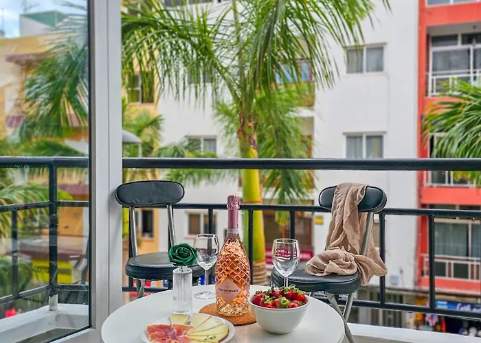 Das 68 m² große Palms2Beach Appartement - 200M Van Strand Met Airco En Wifi Los Cristianos liegt rund 5 Gehminuten vom Hafen von Los Cristianos sowie dem Arona Strandpark entfernt und bietet Blick auf die Stadt.